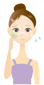 「肌がテカる=皮脂が多い」と思いがちですが、必ずしもそうとは限りません。肌は乾燥を感じると、うるおいを補おうとして皮脂の分泌が活発になることがあります。そのため、肌表面はべたついているのに、実は角質層の水分が不足している状態かもしれません。肌にうるおいを与え、水分と油分のバランスを保つことが大切です。