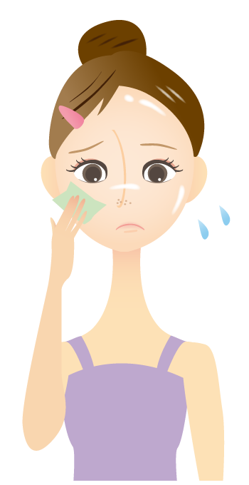 「肌がテカる=皮脂が多い」と思いがちですが、必ずしもそうとは限りません。肌は乾燥を感じると、うるおいを補おうとして皮脂の分泌が活発になることがあります。そのため、肌表面はべたついているのに、実は角質層の水分が不足している状態かもしれません。肌にうるおいを与え、水分と油分のバランスを保つことが大切です。