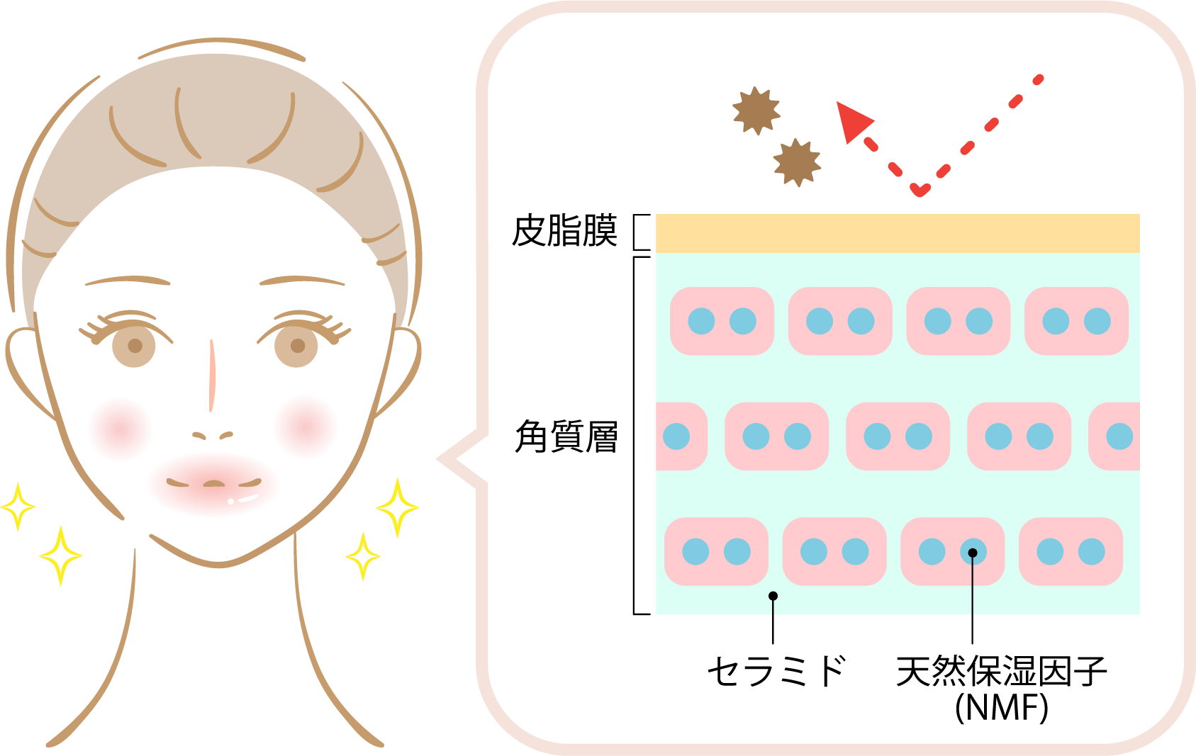 セラミドが不足すると、肌のバリア機能が弱まり、外部からの刺激に対して過敏に反応するようになります。これが敏感肌です。