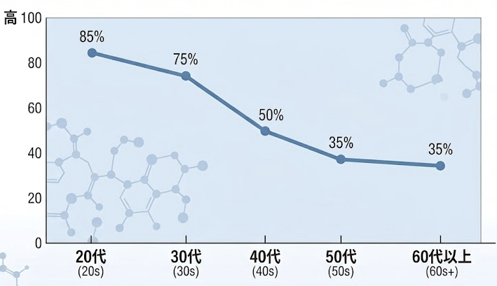 40代になると、セラミドの減少が早まり、肌の乾燥やバリア機能の低下を感じやすくなります。この時期は、セラミドを積極的に補うことが特に重要です。